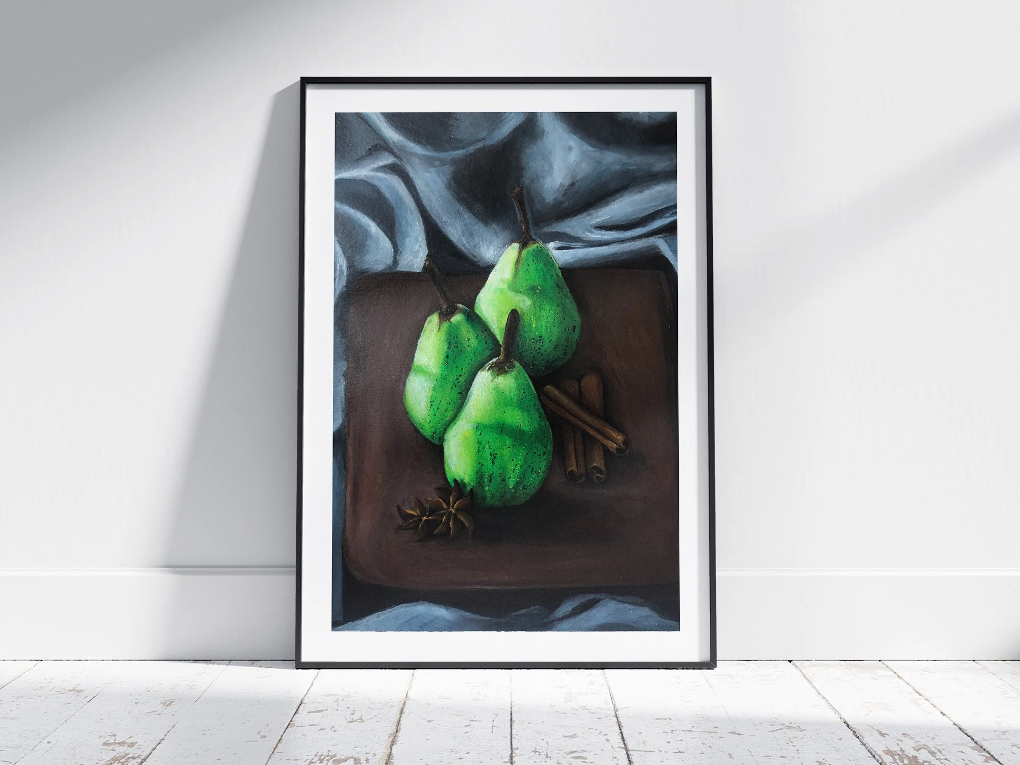 The idea for this painting came from a recipe I came across on social media—one that paired pears with whole spices to create an autumn dessert. That combination immediately evoked the sweetness of changing leaves and the warmth that begins to settle in as colder days approach. In the painting, the pears sit beside spices traditionally associated with comfort and ritual, bringing with them a sense of domestic familiarity.