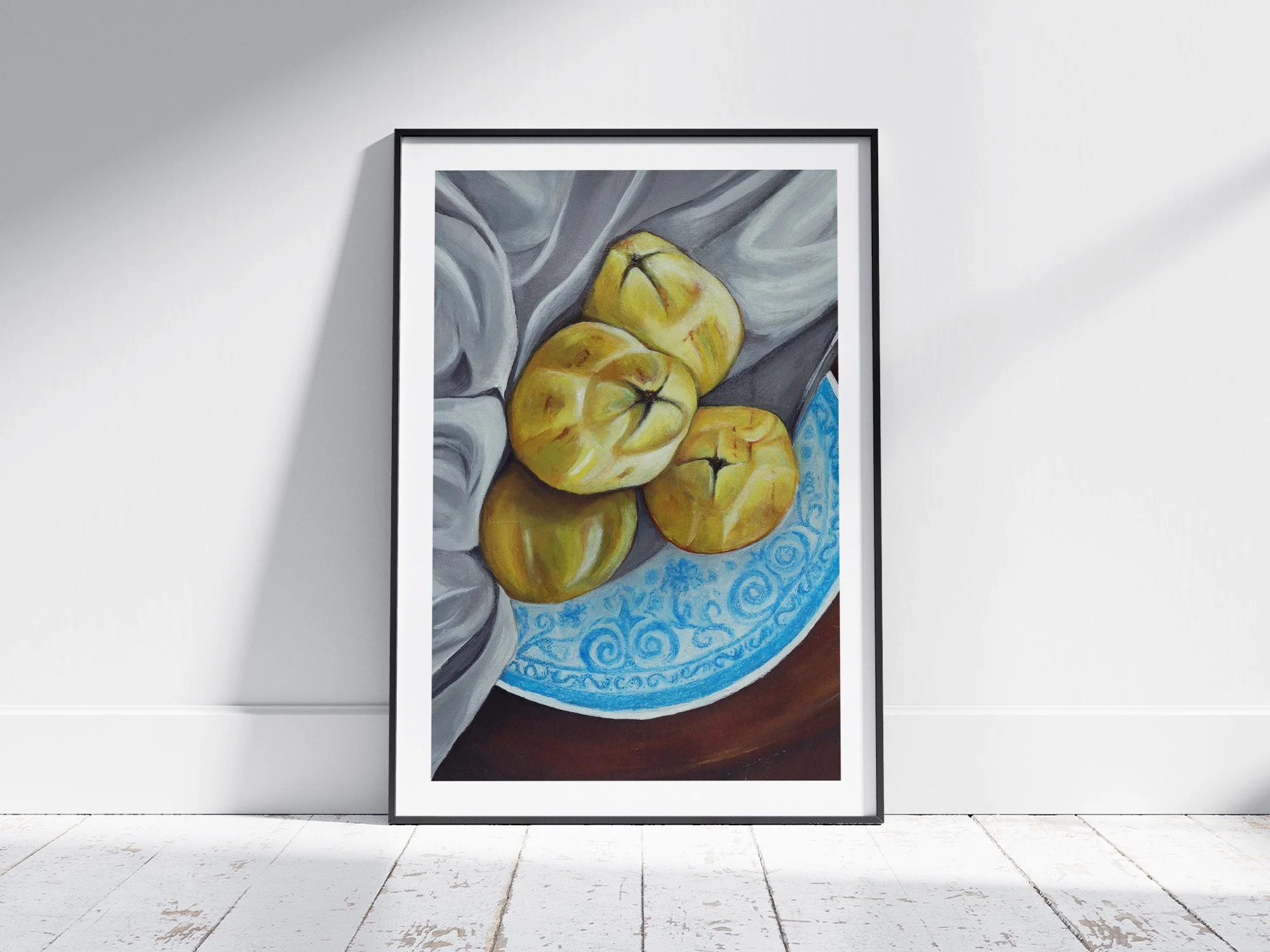 I focused on painting the folds so that the shadows move subtly across the surface, letting the fabric steer the rhythm of the composition. The smooth pattern of the plate adds a sense of balance and grounded detail, anchoring the scene without overwhelming it. The still life becomes a quiet meditation on support and release—how softness and stability can coexist, and how ordinary domestic objects can reflect internal states without relying on overt symbolism.